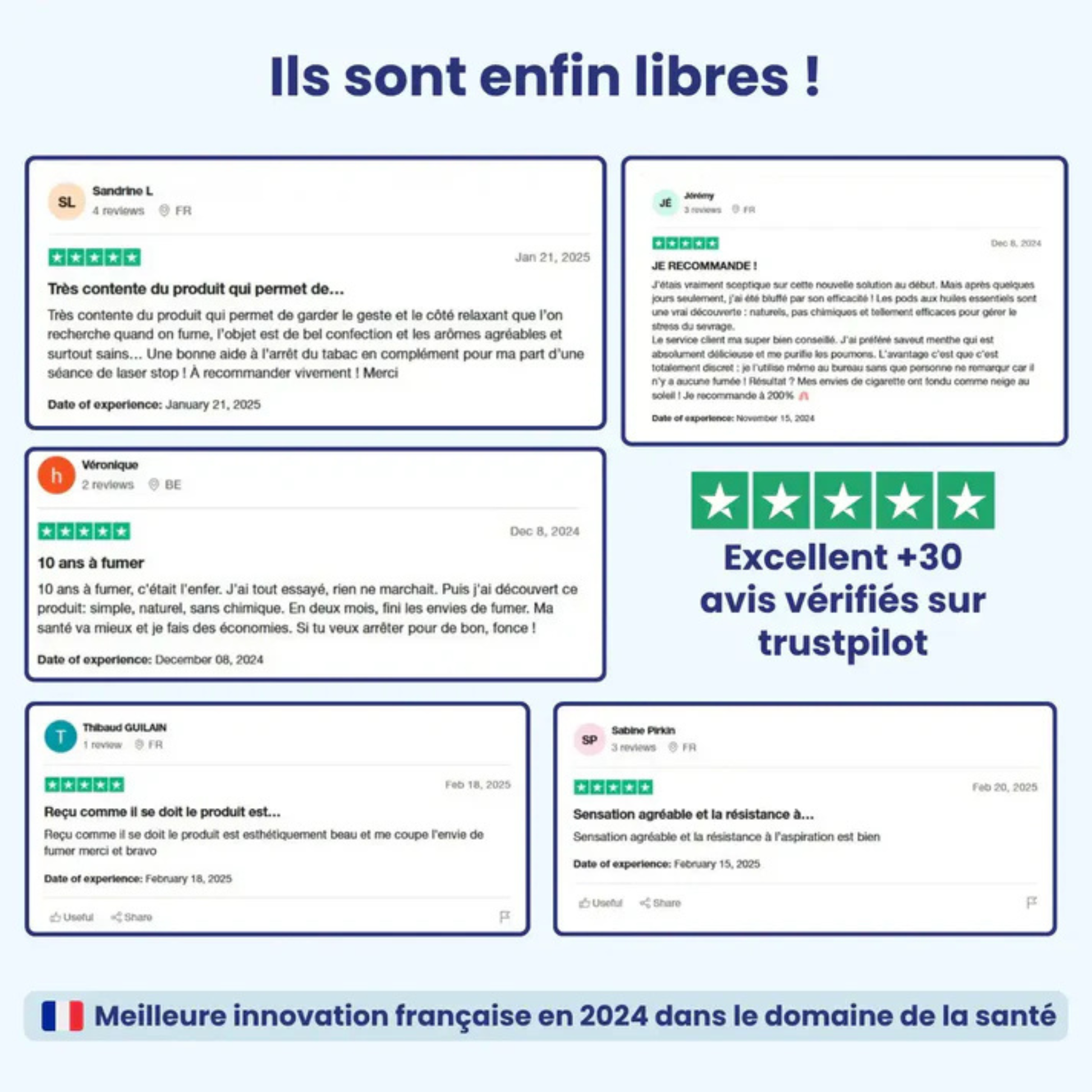 "Sérén'Air offre une alternative douce et sans nicotine. Plusieurs de mes patients ont réduit ou arrêté leur consommation avec plus de sérénité. Je le recommande comme soutien complémentaire au sevrage."